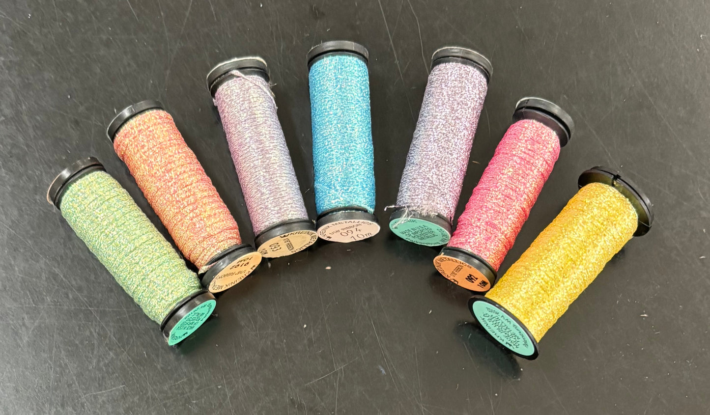 We've collected some Kreinik 1/16th ribbon in beautiful pastel hues. This package includes seven spools of 1/16th ribbon.